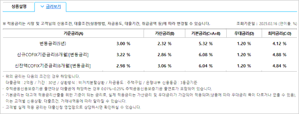 - 대출가능여부 및 최종대출금액은 신용도, 소득, 담보방식, 보유중인 다른대출 등에 따라 달라질 수 있다고 합니다.