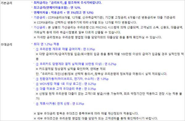 - 우리은행의 심사기준, 신용도, 거래실적, 상품별 취급조건 등에 따라 대출가능여부, 대출금액, 대출금리 등이 결정된다고 합니다.