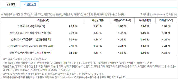 - 대출 승인 후 개인정보의 변동 (신용등급, 채무상황, 계약 조건 등)이 발생하는 경우, 대출 실행이 불가할 수 있습니다.