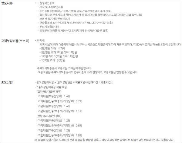 대출관련비용으로서는 인지세가 있습니다. 은행과 고객이 각 50%씩 부담하며, 주택도시보증공사 보증료는 고객부담이라고 합니다. 다만 보증료율은 주택도시보증공사의 업무기준에 따라 결정되며, 보증료율은 변동될 수 있다고 합니다.