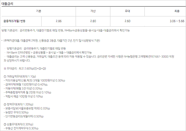 농협 전세자금대출 금리, 이자, 이율은 다음과 같다고 하는데요. 농협 전세자금대출 금리는 주택자금대출, 대출금액 2억원, 신용듬급 3등급, 대출기간 2년1개월, 만기 일시상환방식 기준에 따른 농협 전세자금대출 금리라고 합니다.