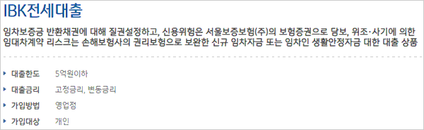 기업은행 홈페이지에서 안내하고 있는 기업은행 전세자금대출 상품은 임차보증금 반환채권에 대해 질권설정하고, 신용위험은 서울보증보험(주)의 보험증권으로 담보, 위조 및 사기에 의한 임대차계약 리스크는 손해보험사의 권리보험으로 보완한 신규 임차자금 또는 임차인 생활안정자금 대한 대출 상품이라고 합니다.