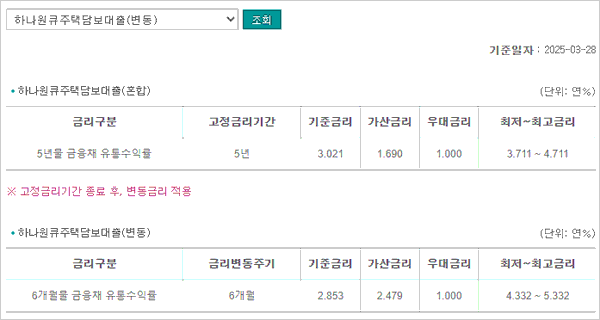 담보는 KB시세가 없는 아파트, 연립빌라, 다세대주택(미등기주택, 도시형생활주택, 다가구주택, 다중주택, 오피스텔 제외)이라고 하며, 하나은행 주택담보대출 상환방법은 전액 원리금 균등분할상환 방식이 적용된다고 합니다.