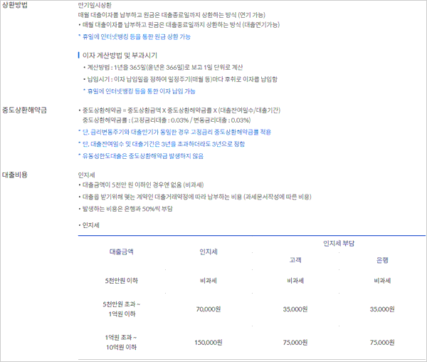 상환방법은 만기일시상환방식으로서, 원금은 만기에 일시상환하고 이자는 일정주기(매1개월 등) 단위로 납부하는 방식이라고 합니다.