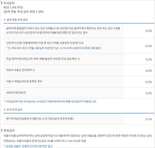 - 대출금리는 차주 신용도별 차등 적용됩니다. 대출 이자 미납 및 대출 만기 후 미상환시에는 여신거래 약정에서 정한 기간별 연체이율이 적용되고, 신용정보관리대상 등록 등의 불이익을 받을 수 있다고 합니다.