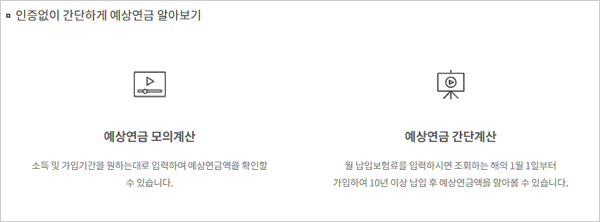 ▶ 이 방법은 노령 및 장애 유족연금 예상액을 인증과정 없이 간편하게 확인할 수 있는 장점이 있다고 합니다.