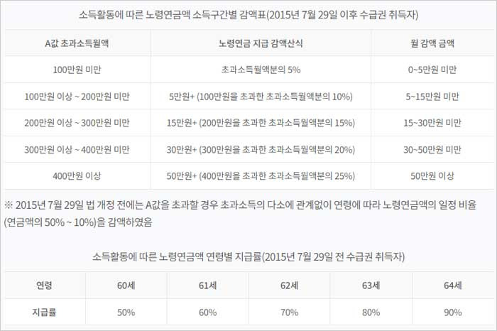 <국민연금 수령시 소득이 있는 경우 감액 소득기준, 국민연금을 받으면서 소득이 발생하면 어떻게 되나요? >