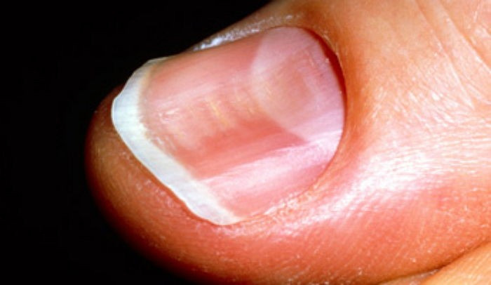 손톱으로 보는 건강상태 중 손톱 끝이 얇아지면서 중앙이 내측으로 곡선을 그리고 있는 현상은 철분 부족이 아주 심한 경우에 흔히 나타난다고 하는데요. 철 결핍성 빈혈이나 관상동맥 질환, 간 질환 등을 의심해봐야 한다고 해요. 혹시 보우 선(Beau’s line)일 경우 당뇨병이나 순환기 질환이나 폐렴이나 볼거리 같은 열병과 관련 있을 수 있다고 하는데요. 이는 심장 동맥 폐색으로 이어질 수 있기 때문에 주의해야 한다고 해요.