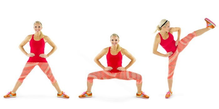 엉덩이 밑살 빼는 운동 중 이 동작은 스쿼트와 발차기를 합친 동작으로 무릎을 굽혔다가 펴면서 일어나는 반동으로 힘껏 발차기를 하면 됩니다.