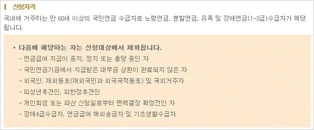 - 장애4급수급자, 연금급여 해외송금자 및 기초생활수급자.