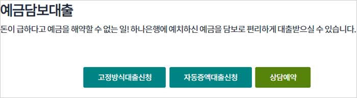 신청 대상 자격 조건은 하나은행에 예금(일부 제외) 거래가 있는 본인 또는 제3자 명의의 당행 예금, 적금, 부금 등을 담보로 제공하는 개인이라고 합니다. 다만 전자금융을 통한 예금담보대출은 본인명의 당행 예금, 적금, 부금만 가능합니다.