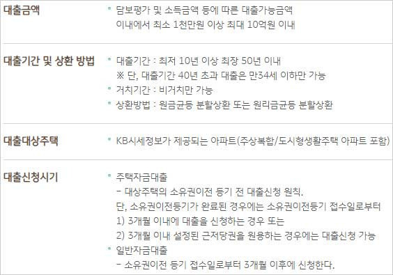 대출 신청 대상 자격은 기본적으로 아파트 구입을 위해 자금이 필요한 분들이에요. 한국신용정보원의 신용관리규약에 해당사항이 없고, 국민은행의 내부 신용평가 기준을 충족해야 한답니다.