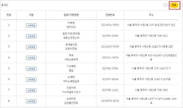 사용 가능한 업종은 전통시장과 동네마트, 식당, 의류점, 미용실, 안경점, 약국, 의원, 교습소, 학원 등이라고 해요.