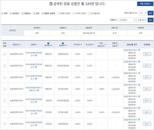 - 금리 순 정렬: 결과 목록은 보통 가장 낮은 금리 순으로 정렬되므로, 상위권 상품을 중심으로 확인합니다.