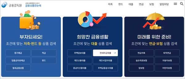 1. 은행별 전세자금대출 금리비교 사이트 금융감독원 '금융상품 한눈에 홈페이지의 특징 및 의미
