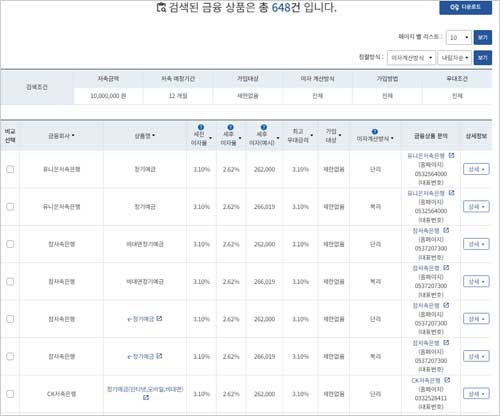 이 순서대로 조회하시면 가장 높은 금리의 정기예금을 현명하게 선택하실 수 있답니다.