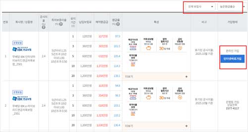 - 최종적으로 마음에 드는 상품을 선택하면, 해당 보험회사의 온라인 다이렉트 가입 채널로 연결됩니다.