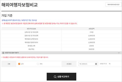 Step 3. 해외여행자보험 가격비교 사이트 보장 조건 선택 및 보험료 비교 조회