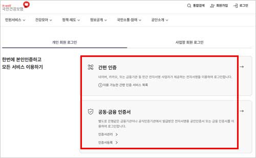 - 로그인: 간편인증(카카오, 토스 등) 또는 공동·금융인증서를 통해 본인 인증을 진행합니다.