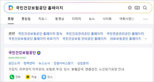 - 공식 홈페이지 접속: 검색창에 '국민건강보험공단'을 입력하여 접속합니다. (보안을 위해 반드시 공식 주소인 nhis.or.kr을 확인하세요.)