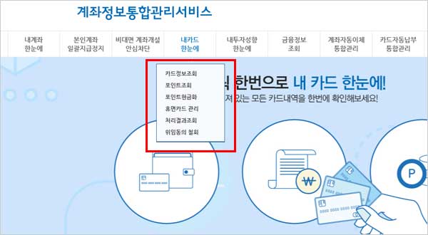 내 카드 한눈에 조회 서비스 이용방법 알아보기