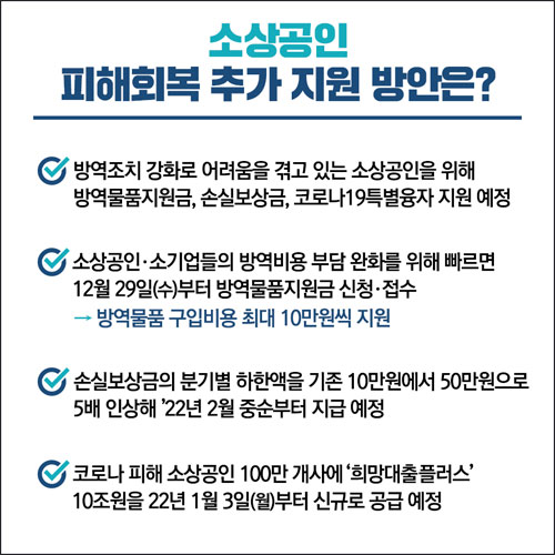 방역패스 적용 확대에 따른 방역물품 비용 부담을 경감하기 위해 최대 10만원의 현물 지원을 병행하는데요. 중소벤처기업부가 방역패스 의무적용 소상공인 114만5000명에게 방역물품지원금 1,145억원을 지급한다고 밝혔습니다.