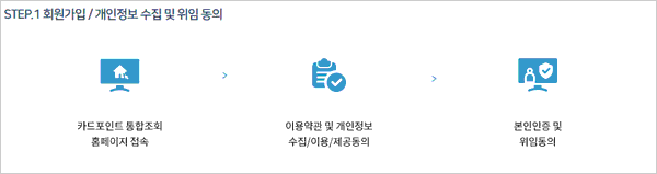 카드 포인트 정보는 개인정보이므로, 조회를 시작하기 전에 반드시 본인인증 절차를 거쳐야 하는데요. 현재 이용 가능한 인증 수단은 공동인증서(구 공인인증서), 금융인증서, 간편인증(네이버, 카카오 등) 등이 있구요. 본인이 가장 편리한 수단을 선택해 인증을 완료하고, 약관 동의 절차를 거치는데요. 이는 안전한 카드포인트 현금화 방법서비스 이용을 위한 필수적인 과정이라고 해요.