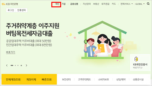 국민은행 휴면계좌 조회 전국은행연합회 홈페이지 아래에 보이는 휴면계좌 조회하기에서 개인을 선택한 후 이름과 주민등록번호 등의 정보를 이용하면 간단하게 휴면계좌 통합조회가 가능합니다.