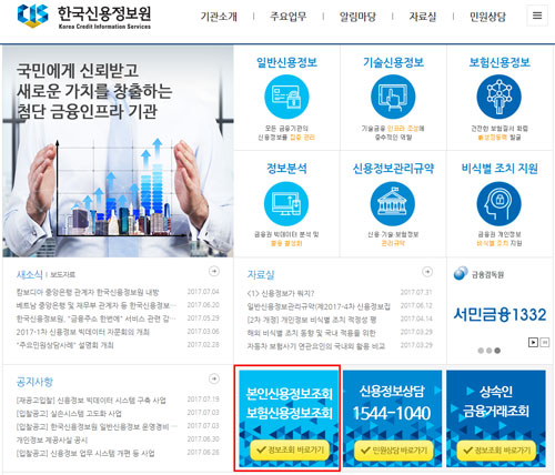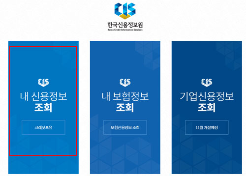 먼저 한국신용정보원 홈페이지를 열면 하단에 신용정보조회 항목이 보여요.