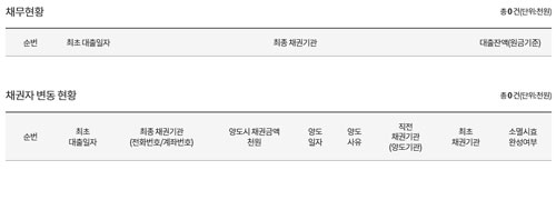 각 금융기관별 채무현황과 채권자변동상황을 보실 수 있어요