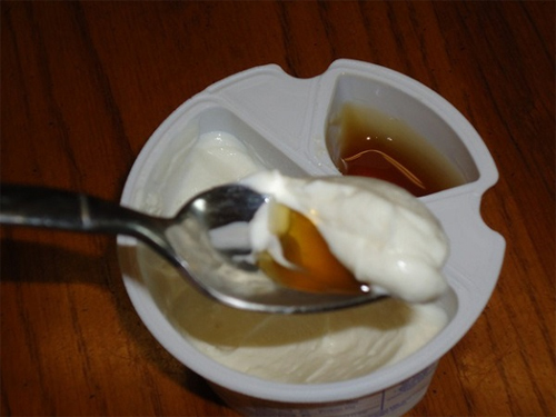 4. 그릭 요거트 등을 먹을 때 한쪽에 꿀이나 잼, 초콜릿 등이 있는데 편리하게 먹는 방법이 있다. 한쪽 부분을 요거트 쪽으로 '접으면' 된다.