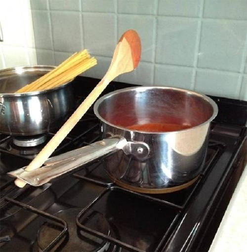 2. 냄비 손잡이에 작은 홈이 있을 경우 이곳에 나무 주걱을 끼워서 요리를 하면 음식 국물이 묻지 않아 깔끔하다.