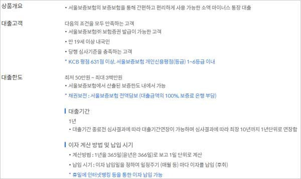 신한은행 비상금대출 소액 마이너스 통장 대출 한도 및 신청대상 자격조건 등에 대해 간단하게 알아보도록 하겠습니다. 신한은행 홈페이지에서 안내하고 있는 신한은행 비상금대출 상품은 서울보증보험의 보증보험을 통해 간편하고 편리하게 사용이 가능한 대출 상품이라고 합니다.