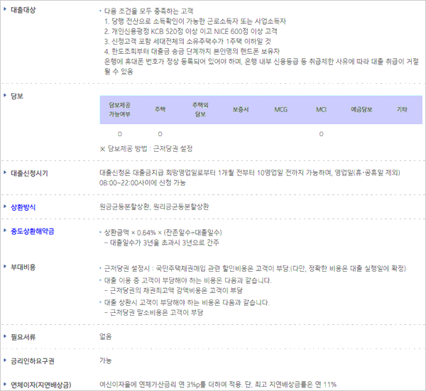다만 은행에 휴대폰 번호가 정상 등록되어 있어야 하며, 은행 내부 신용등급 등 취급제한 사유에 따라 대출 취급이 거절될 수 있다고 합니다.