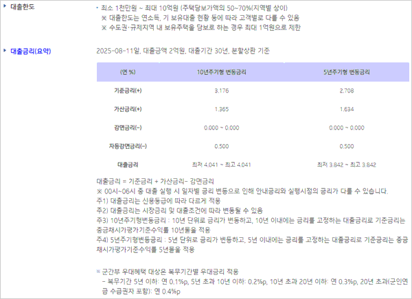 대출 기간은 10년 이상 30년 이내라고 하는데요. 다만 매 5년 단위로 운용된다고 하며, 상환방법은 원금균등분할상환, 원리금균등분할상환 방식이 적용된다고 합니다.